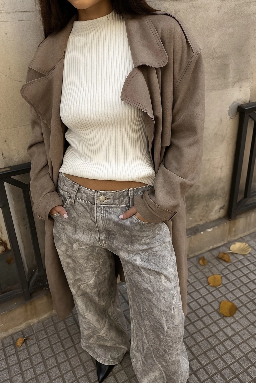 Jean rigido wide leg, tiro medio. Si querès que te quede màs tiro bajo, elegì un talle màs al que soles usar.